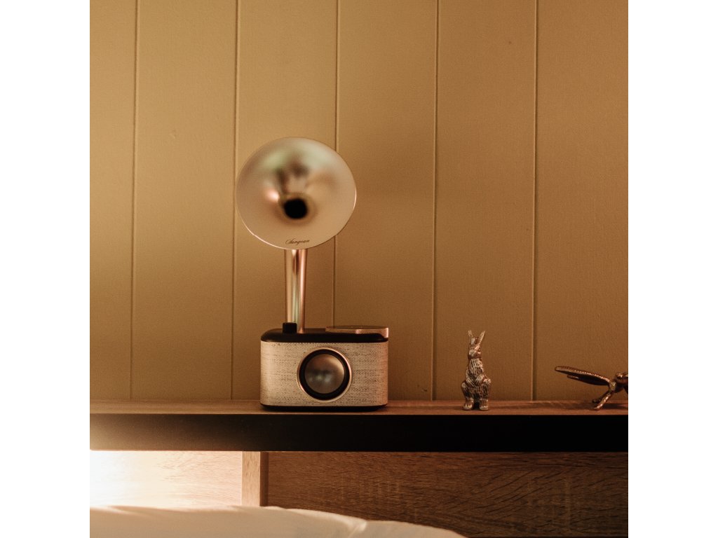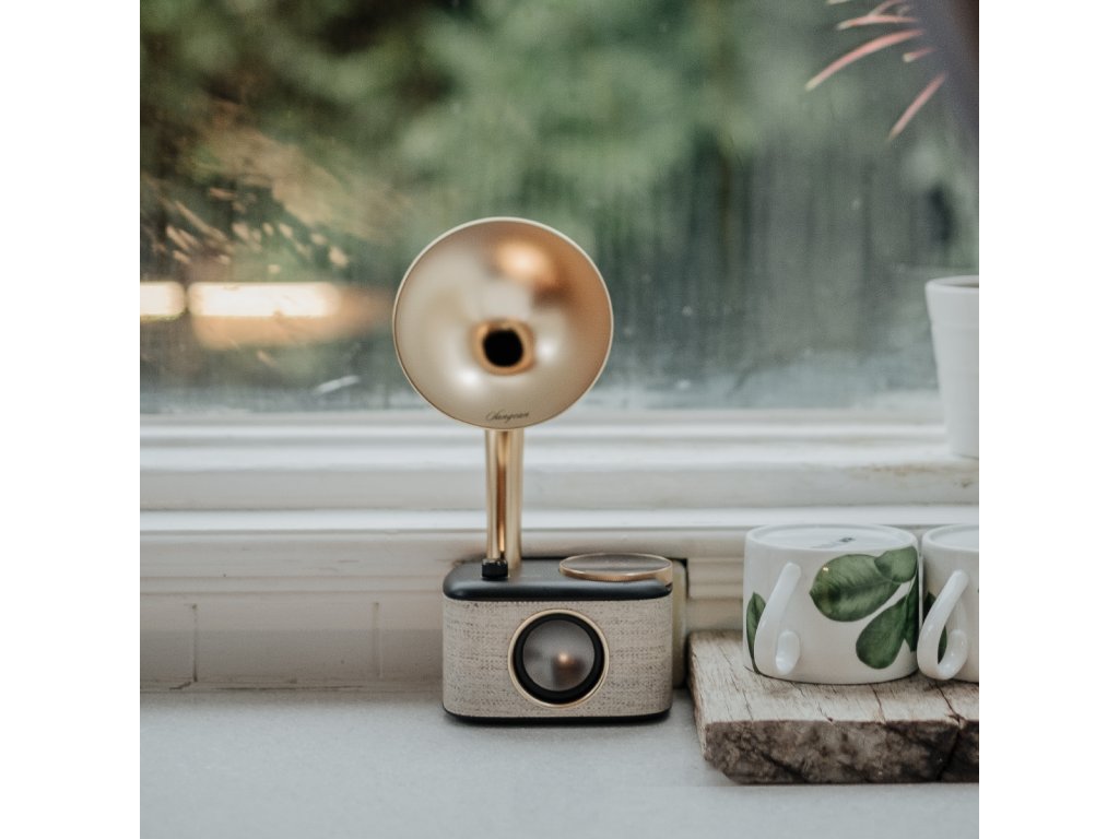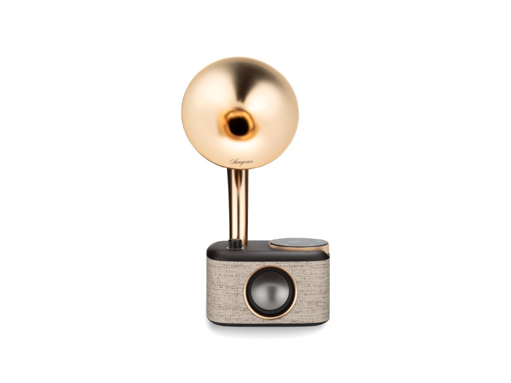 Sangean CP-100D predstavuje unikátne spojenie elegantného vintage-štýlu a modernej digitálnej techniky. Horná časť zariadenia pripomína klasický gramofónový „horn“ reproduktor, no ide o plne moderné rádio s digitálnym tunerom, dotykovým ovládaním a vysokou mobilitou.