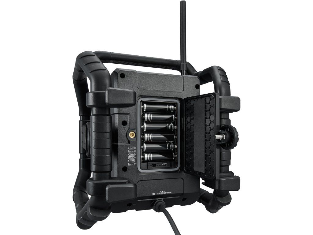 K dispozícii je aj AUX vstup a USB port, ktorý umožňuje prehrávanie hudby aj nabíjanie mobilných zariadení. Rádio tak funguje aj ako praktické napájacie centrum priamo na pracovisku.
