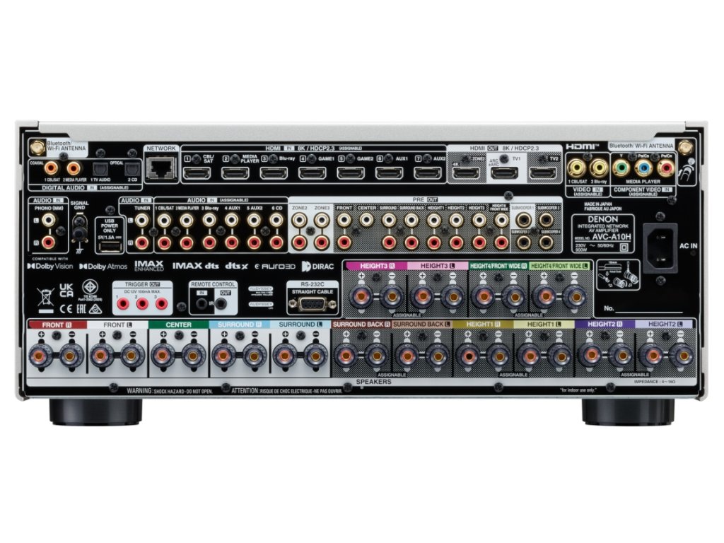 Denon AVC-A10H patrí medzi najvýkonnejšie AV receivery značky Denon a je navrhnutý pre náročné domáce kiná aj audiofilské zostavy. Tento model kombinuje špičkový výkon, moderné video technológie a pokročilé spracovanie zvuku, vďaka čomu dokáže vytvoriť realistický a mimoriadne dynamický priestorový zvuk.Receiver je vybavený 13 výkonnými zosilňovačmi, ktoré dokážu napájať až 13 reproduktorov a až 4 nezávislé subwoofery. To umožňuje vytvoriť komplexné konfigurácie domáceho kina, napríklad 7.1.6 alebo 9.1.4, ktoré poskytujú skutočne pohlcujúci zvukový zážitok. Výkon až 150 W na kanál zabezpečuje dostatočnú rezervu aj pre veľké reproduktorové sústavy.